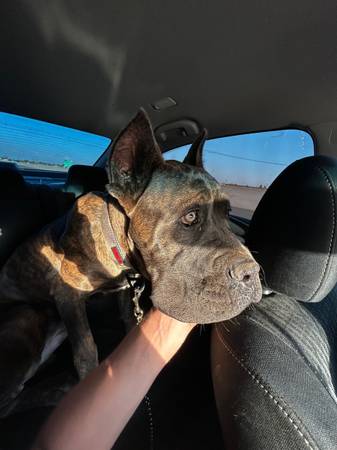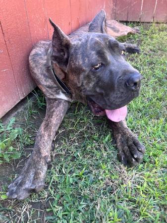 Diesel is 9mo, he is very friendly he is very playful he needs alot of attention hes around kids and is never been aggressive.