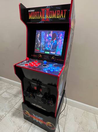 New Arcade1up Mod cabins available for sale with thousands of games available from PlayStation to Atari and every console system in between. Not a full size 300-500 lbs. arcade. Can make it Coin Operated for additional cost otherwise they are stock Free-Play mode. Available I have Simpson, Mortal Kombat II, Street Fighter II, NBA Jam, and Street Fighter Championship Edition.